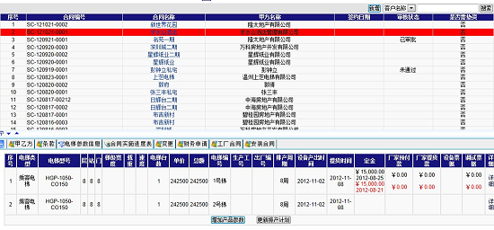 2、合同條款,合同明細,財務(wù)信息(開(kāi)票,回款,預付款,排產(chǎn)款,上二次款,業(yè)務(wù)提成),合同執行進(jìn)度記錄(可上傳附件,如甲方已確認的土建圖),服務(wù)內容變更,電梯參數明細。